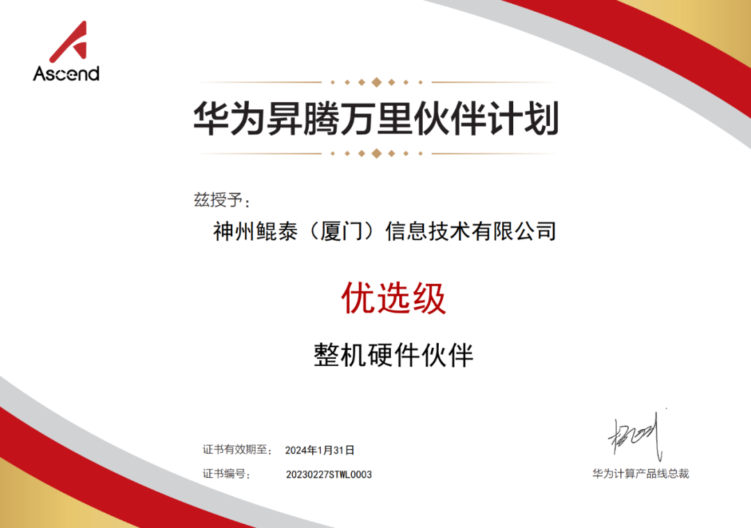近日,BB贝博艾弗森官网数码旗下神州继获得华为鲲鹏领先级整机硬件伙伴认证之后,再获华为昇腾优选级整机硬件伙伴认证!这是神州与华为昇腾深化合作的硕果,也代表着BB贝博艾弗森官网数码信创业务在AI领域获得生态伙伴的充分认可。